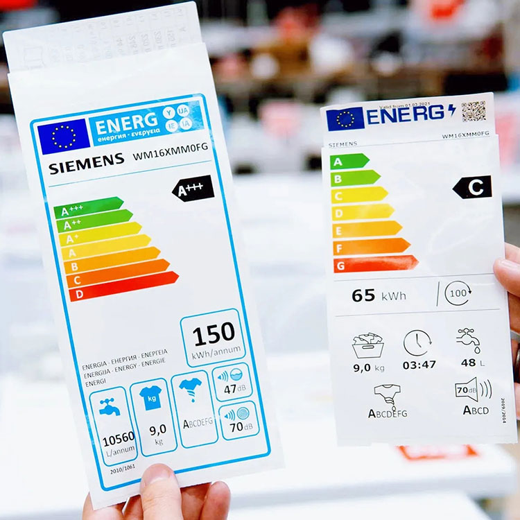 Appliance industria efficientiam pittaciadetailed informationem de industria efficientiae appliance, inclusa copia energiae adhibitionis sub norma operativae condicionis adhibendo.