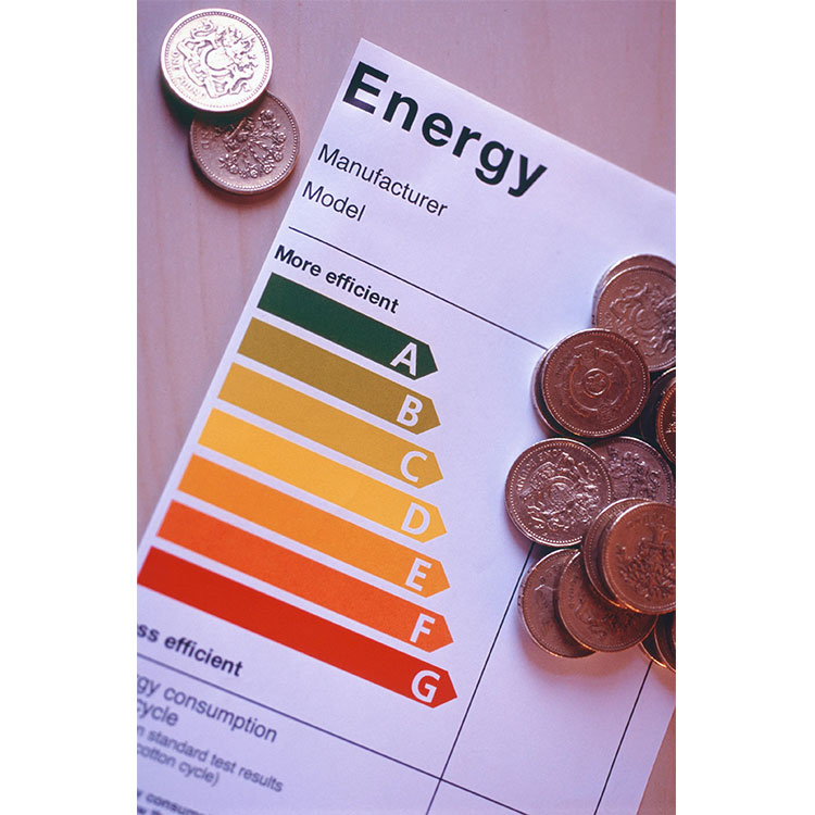 Color coding:Diversae energiae efficientiae gradus saepe diversis coloribus distinguuntur, ut viridis propter efficientiam altitudinis energiae, flavus vel aurantiacus propter efficientiam mediae, et rubra propter efficientiam humilis.