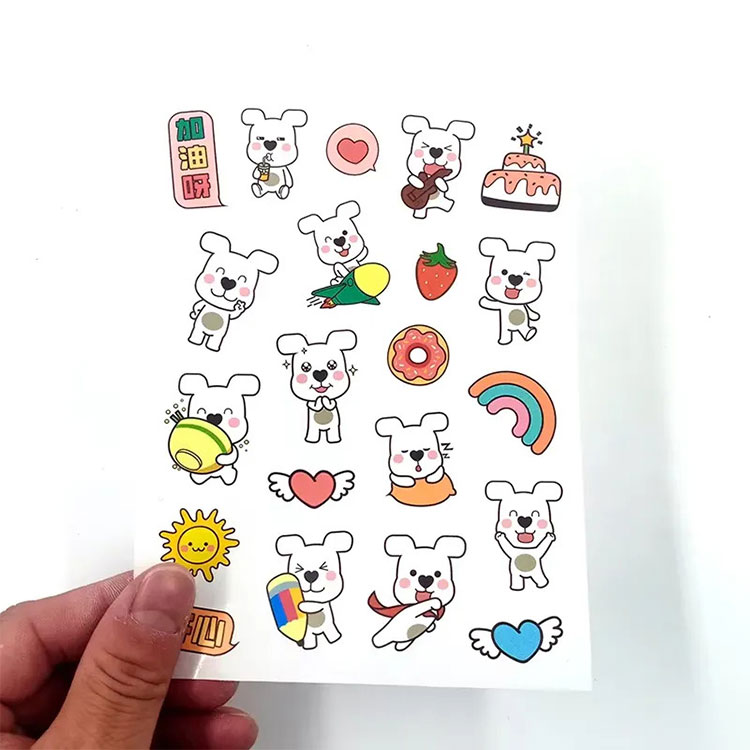fabricae stickers, magneticae stickers, etc. Fabricae stickers affiguntur ad nugas vestiendas vel fabricam, et magnetici stickers uti possunt in tabulis magneticis vel fores leo.