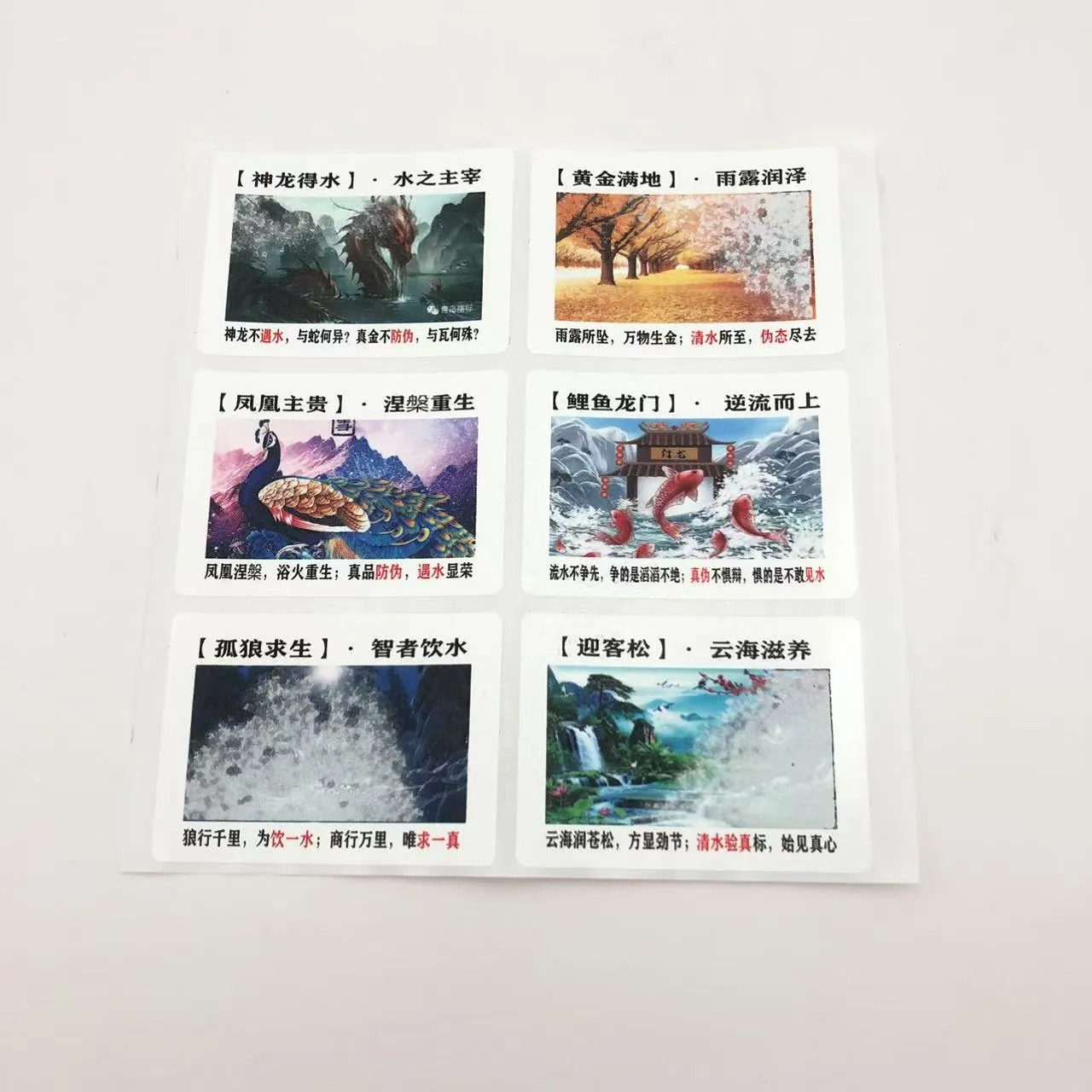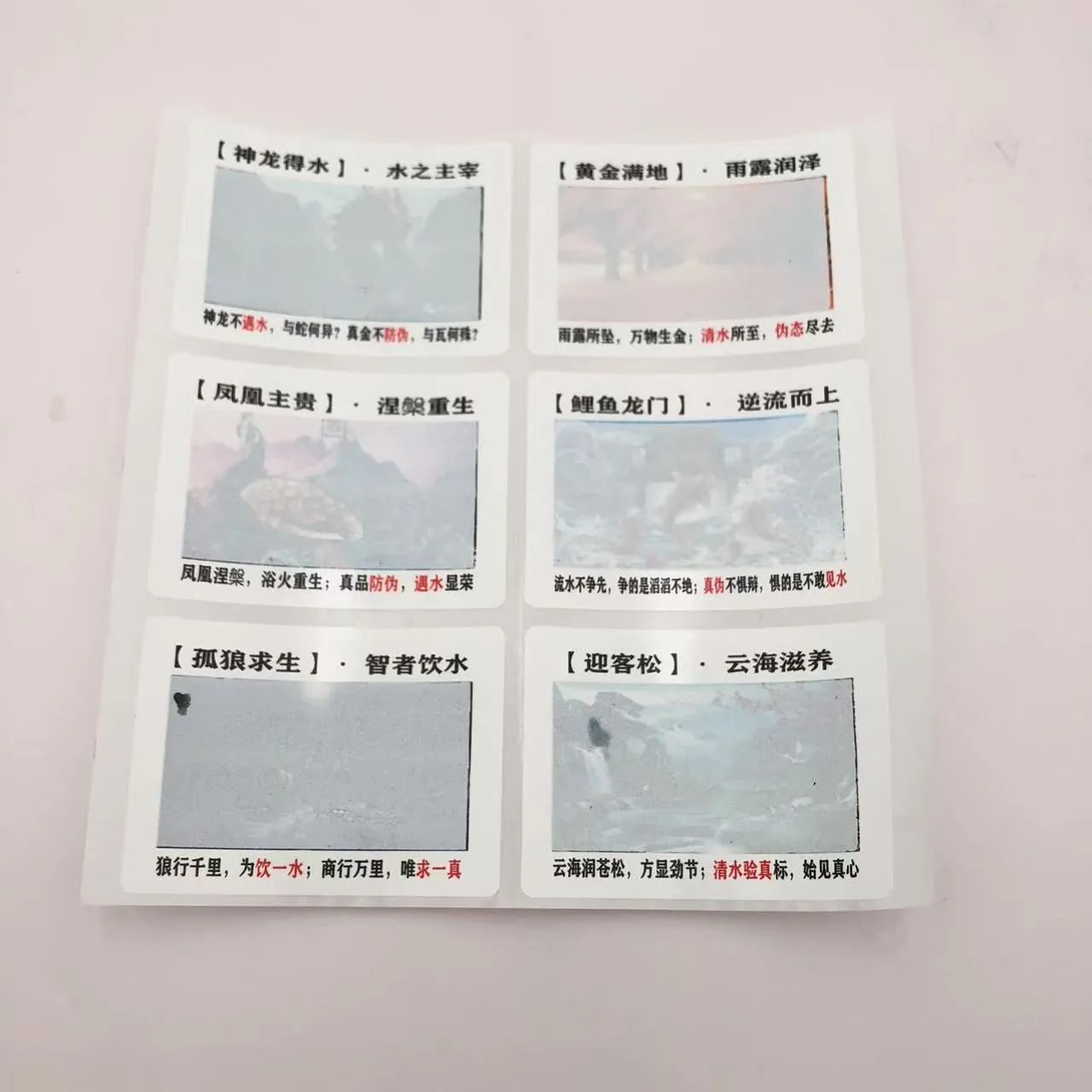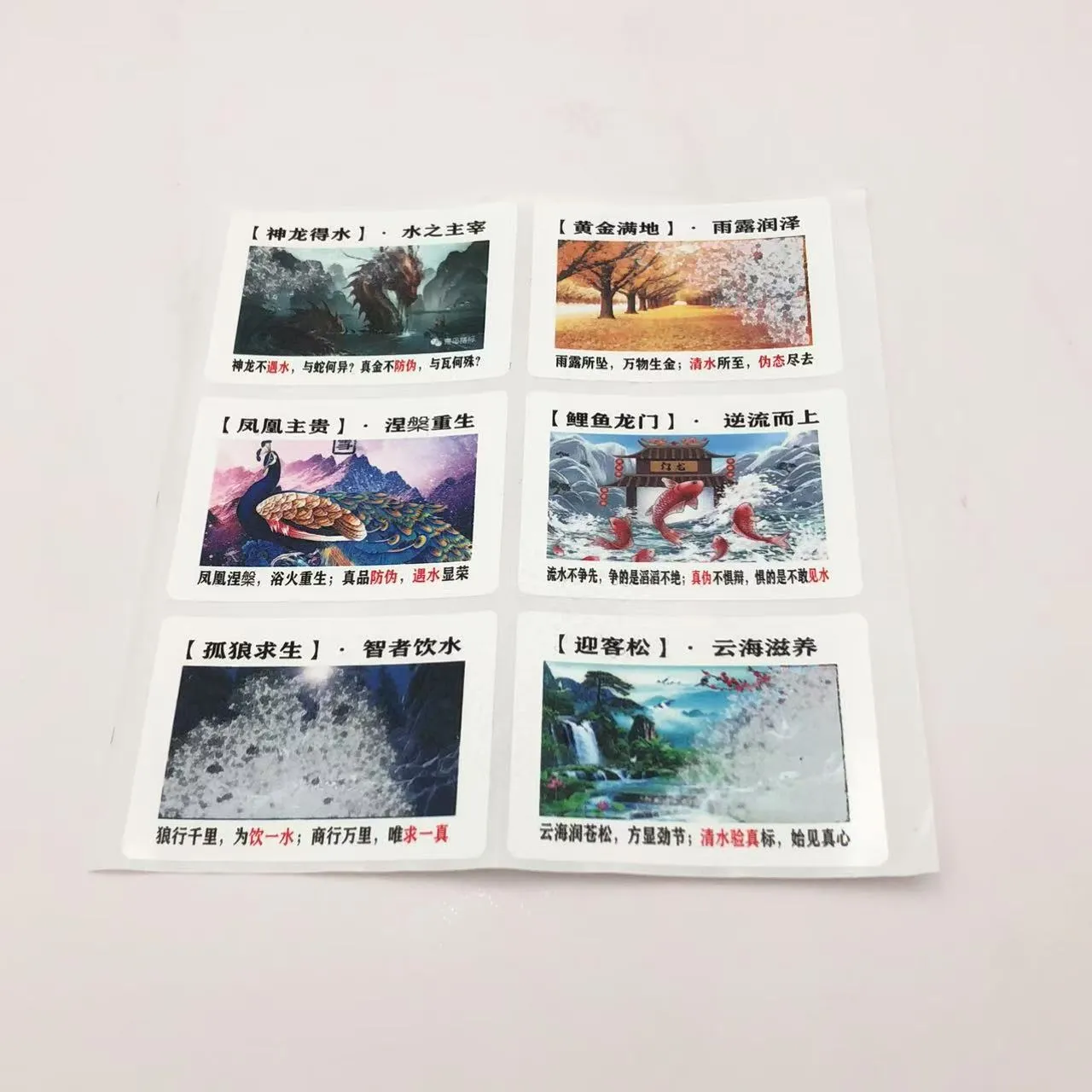 Minutae aquae funduntur omnia quae accipit responsionis pittacii movere. Leve pondus ac portatile, pittacia in varias formas fieri possunt ut chartae et instantiae styli photographicae vestigia.JOJO PackAliquam officia praebet, possumus exemplaria viverra imprimere, logos notam, contentum promo, et magis in pittaciis. idealia sunt pro festis salutationibus chartarum, puerorum ludibria educationis, venalicium notarum, anti-simulantium, aliarumque applicationum.