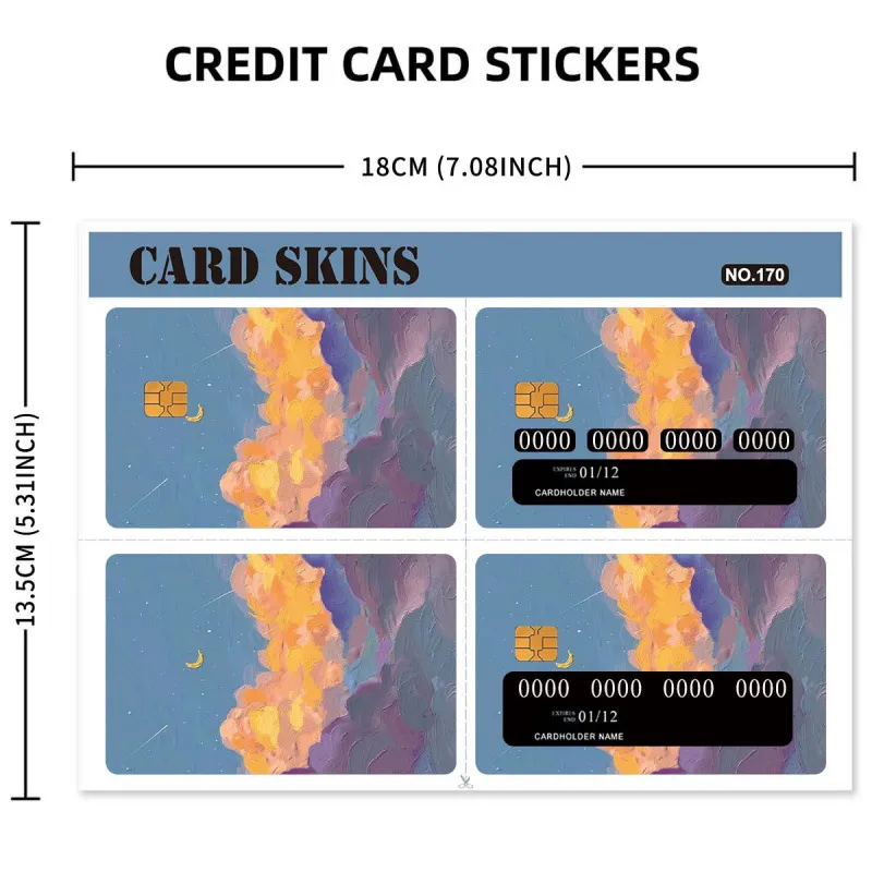 Credit card stickersSunt personalized exornantur stickers quod potest adhæsit super superficiem fidei pecto. Sunt facta de ultra-tenuis et environmentally amica materiae et non afficit normalis swiping de card vel lectio de chip. Non solum dat promeritum pecto ad showcase a unique style, sed aliqui products etiam practical munera ut anti-twipe (RFID Blocking) et simul Support logo Logo. Est productum quod combines pulchritudinem et practicality.
