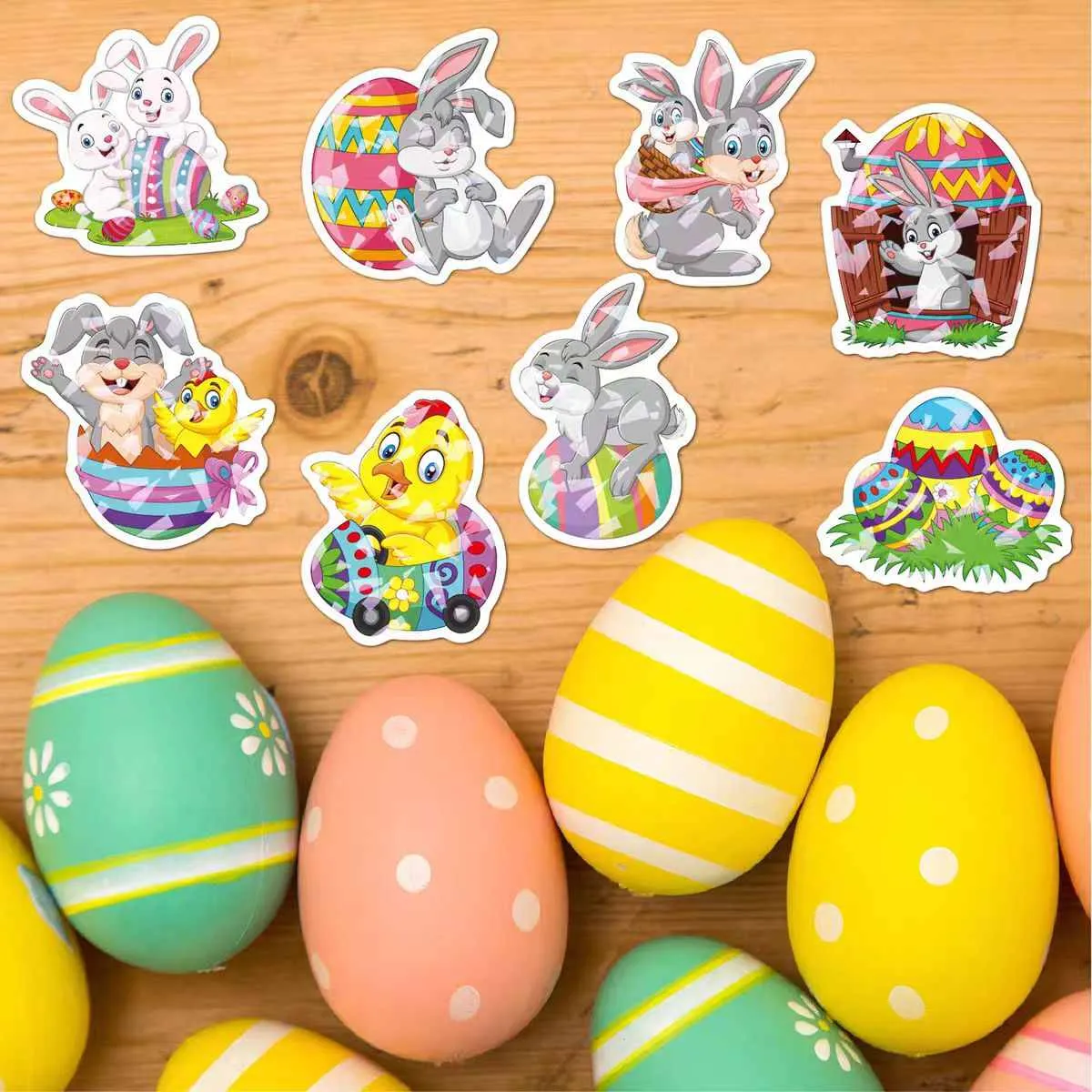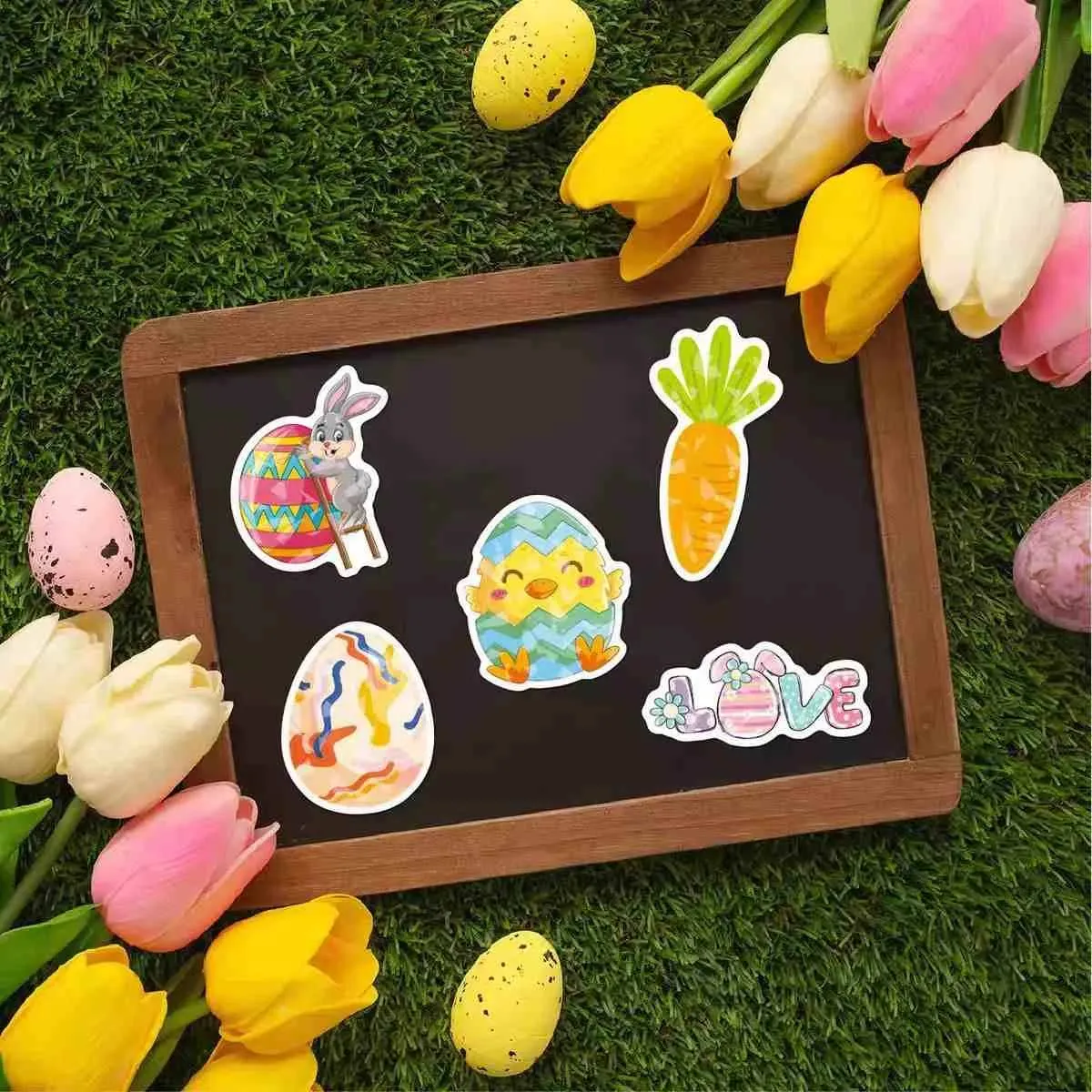 Apta variis usibus paschalibus: parvae obtrectatores pro ovis vel conchis, medium ad cistas et sportas doni, et magnas ad fenestras ostentationes. Facile removet sine residuo a superficiebus ut vitrum, plasticum, lignum.