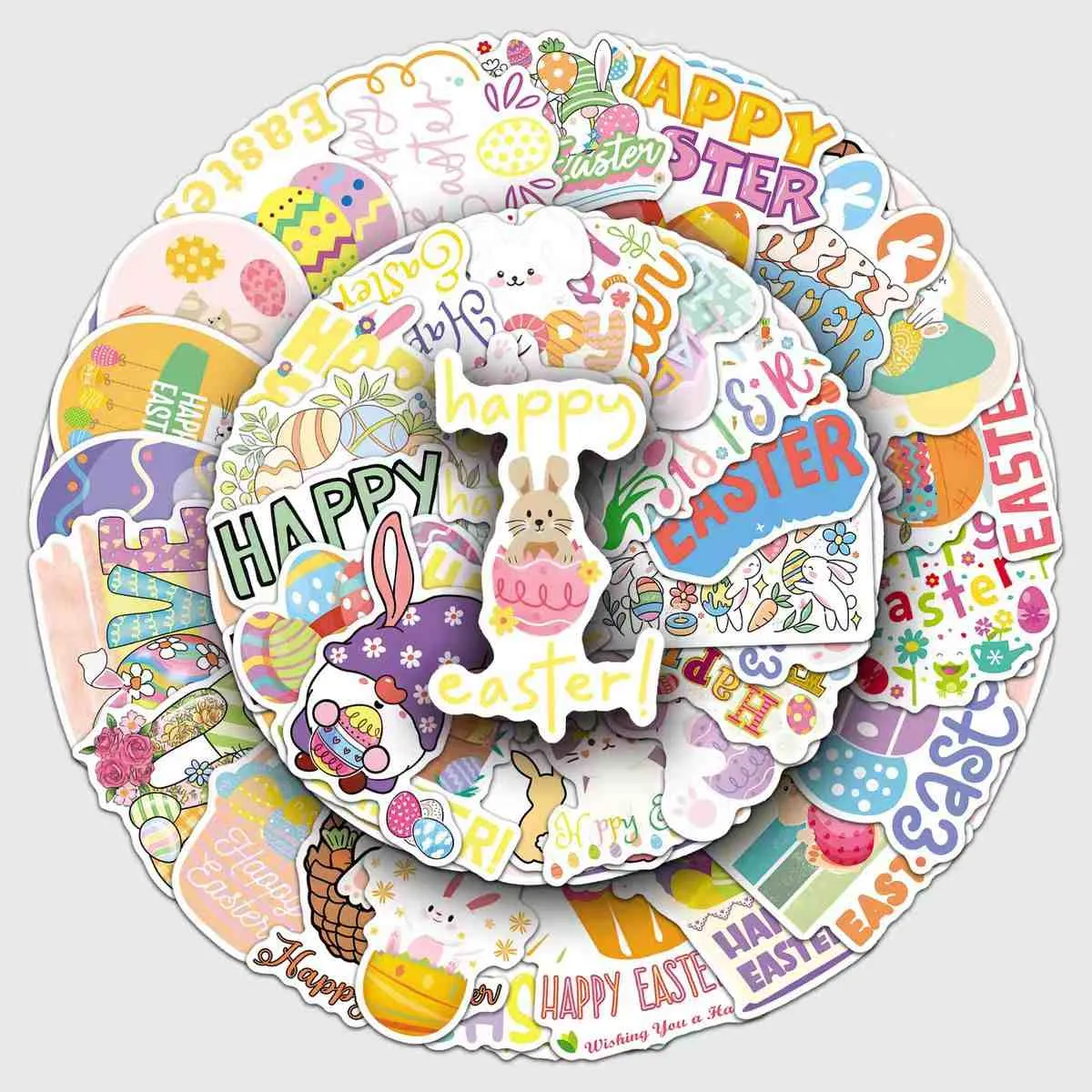Focus in ovis paschalibus cum effectivis consiliis includentibus puncta classica polka, exemplaria floralia, cuniculos viverra, et stilos cum aestheticis occidentalibus. Plenus color CMYK typographiae lucidas umbras pastellas profert et gradationes ad vivam festivitatem spectant.