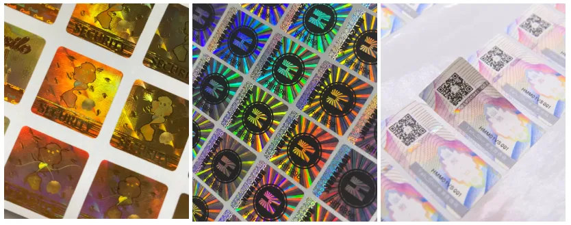 Hologram securitatem pittaciapraebere anti-simulans praesidium products. Tituli Hologrammi sunt labellae auto-tenaces factae per laminas veli holographici in chartam ad efficiendum 3D effectus visuales. Adhibentur in fucis, electronicis, electronicis, fasciculis, et aliis agris, qui notam recognitionem augere possunt et tutelam simulatam praebere possunt. Contenta visualis inter pittacia hologram adhibent effectus dynamicos visivorum, qui mutantur cum mutatione angulorum inspiciendi, difficiles ad replicandum faciendos. Titulorum securitatis Hologram exhibeant observantiam superiorem sub condicionibus humilibus levibus. Etiam in ambitu obscuro accensis, figuli holographici conspicui manent.