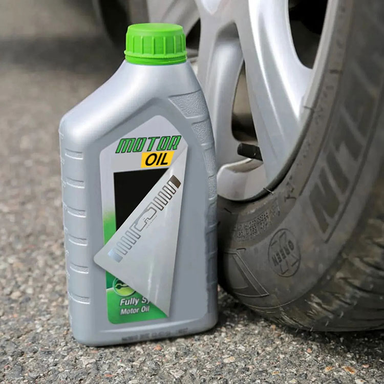 Pittacium plerumque continet notam nominis machinalis olei, speciei (ut 10W-30, 5W-40, etc.), viscositas gradus et alia magni momenti notitia ut utentes celeriter cognoscere et eligere rectam opus permittant.