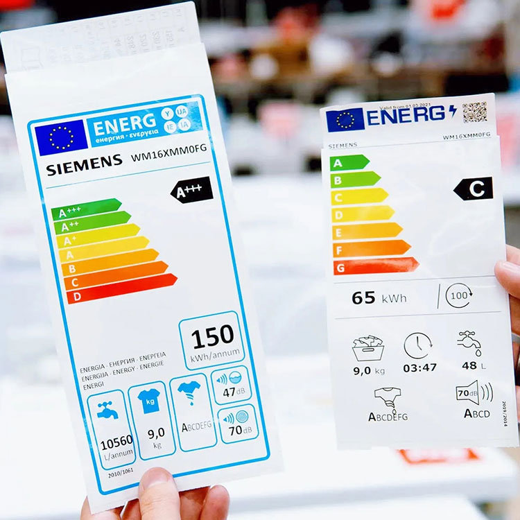 Additional parametri consummatio non industria:Praeter energiae consumptionem informationes, armarium energiae efficientiae titulus potest etiam alios parametros non-energias consummatio relatas exhibere, ut emissiones strepitus, aqua consummatio, capacitas, reparabilitas, gradus fides, etc.