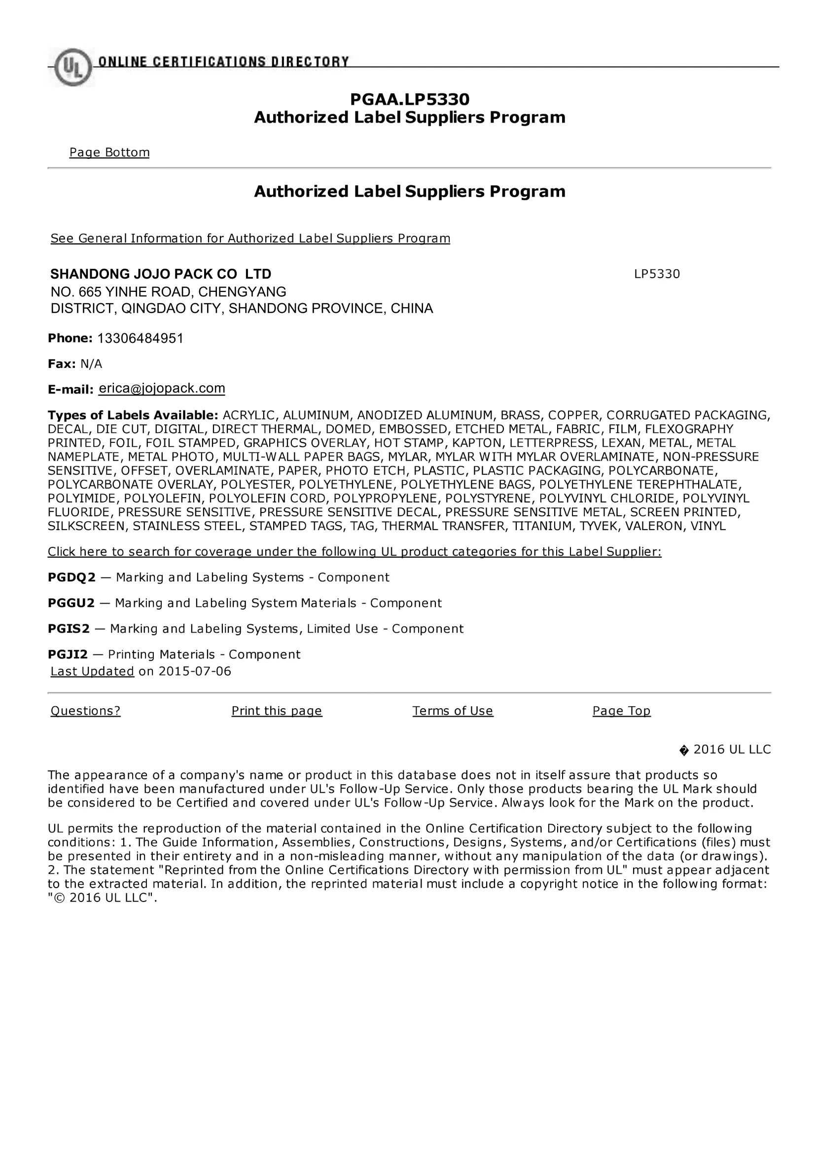 Jojo PackSquare-meter plagam, ad 18,000, complementum a team covering consilio, dispensando et R & d. Nostri stickers et pittacia occursum rigorous certification signa, comprehendo iso (IX) I qualis administratione ratio, tum CMA, FSC, ul et SGS certifications.